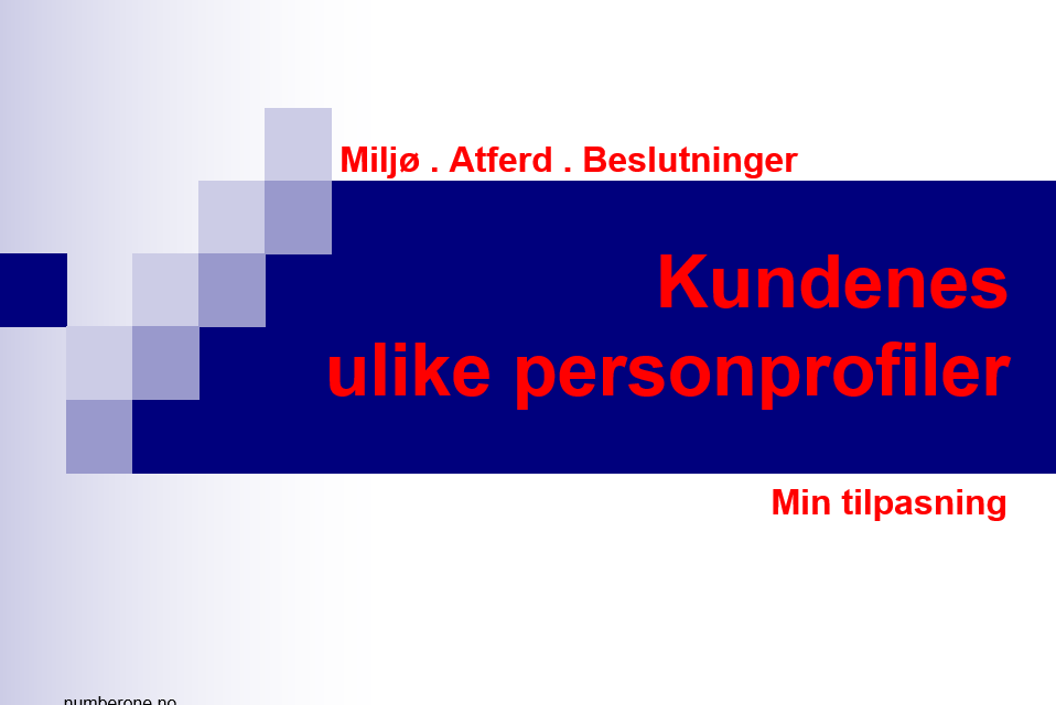 Du lærer hvordan personprofiler er bygget opp og hvorfor du har ulike «kjemi» med forskjellige kunder og kollegaer. Du lærer å tolke hver kundes atferd og naturlige beslutningsmønster. Og du blir i stand til å tilpasse en tillitsvekkende kommunikasjonsform som bygger gode kunderelasjoner.